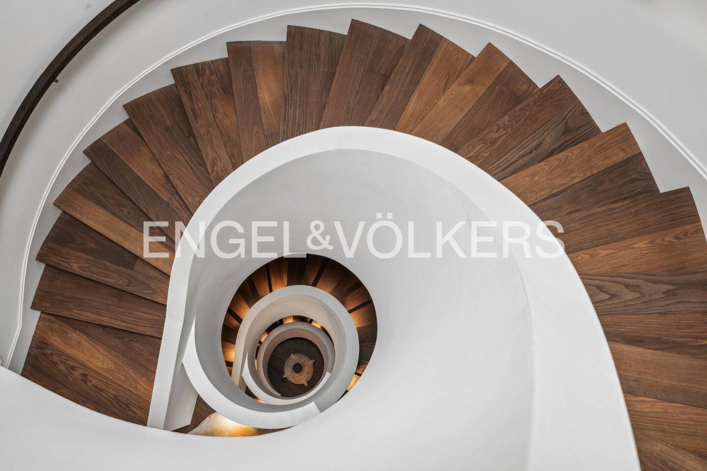 Schon beim Betreten des Hauses empfängt Sie eine Atmosphäre von zeitloser Eleganz und Raffinesse. Das architektonisch markante Gebäude, Baujahr 2020, erstreckt sich über eine beeindruckende Gesamtfläche von ca. 556 qm auf vier Etagen, die mit einem Aufzug verbunden sind. Acht großzügige Zimmern, davon vier luxuriöse Schlafzimmer bieten vielfältige Nutzungsmöglichkeiten für eine Familie oder ein Paar mit großem Raumbedarf. Jedes einzelne Schlafzimmer verfügt über ein eigenes Bad en-suite sowie einen hochwertig ausgestatteten eigenen Ankleidebereich!Besonders hervorzuheben ist das markante, spiralförmige Treppenhaus im Herzen des Gebäudes. Ein Kamin sorgt für eine behagliche und einladende Stimmung, bodentiefe Fenster bieten einen herrlichen Blick ins Grüne. Die nahtlose Verbindung von Innen- und Außenbereichen wird durch gleich zwei großzügige Terrassen und einen sensationellen Garten vervollständigt. Besondere Merkmale dieses Anwesens sind die erstklassige technische Ausstattung und die hochwertigen Materialien, die keine Wünsche offenlassen. Hinweis: Zum Schutz der Privatsphäre der Eigentümer zeigen wir nur eine eingeschränkte Auswahl an Bildern der Innenräume. Bitte überzeugen Sie sich im Rahmen einer persönlich geführten Besichtigung von der hohen Qualität des Angebotes.. Neubau-Villa 2020 mit erlesener Architektur . erfüllt stilistisch und technisch höchste Ansprüche. top-Zustand. Aufzug über alle vier Etagen. eindrucksvoller Wohnraum mit Kamin. Küche von V-Zug. 4 Schlafzimmer mit en-suite Bädern und jeweils eigener Ankleide (sehr hochwertige Tischlerarbeiten). zusätzlicher "family-room" im Obergeschoss. Penthouse-Bereich im DG mit umlaufender Terrasse, Sauna. Wellness-Bereich mit Sauna im Untergeschoss. KNX Smart-Home Steuerung und Alarmanlage. 2 Garagen (eine davon für kleinere PkW). landschaftsgärtnerisch erlesen angelegter Garten (Bewässerung). Gasheizung + Wärmepumpe, Klimaanlage und Kühlung