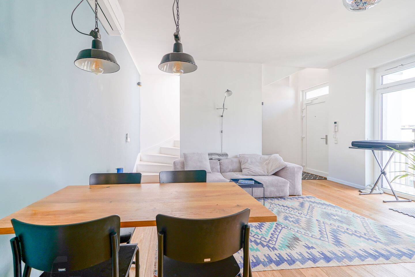 Dieses außergewöhnliche Penthouse vereint moderne Architektur, hochwertige Ausstattung und ein urbanes Lebensgefühl auf beeindruckende Weise. In einem neuwertigen Neubau aus dem Jahr 2021 gelegen, präsentiert sich die Einheit als stilvoller Rückzugsort in der 5. Etage über den Dächern von Berlin - mit klarer Formensprache, lichtdurchfluteten Räumen und einer Dachterrasse, die dem Gesamtobjekt eine fast private Haus-im-Haus-Anmutung verleiht. Mit ca. 84 m² Wohnfläche, einer gehobenen Ausstattungsqualität und einer zusätzlichen Terrassenfläche von ca. 27 m² entsteht hier ein Wohnkonzept, das Design, Komfort und Exklusivität in besonderer Weise miteinander verbindet. Das Haus umfasst insgesamt 12 Parteien und vermittelt dadurch eine angenehm private und überschaubare Atmosphäre. ?Bereits beim Betreten wird deutlich, dass hier großer Wert auf Stil, Offenheit und Wohnqualität gelegt wurde. Der offen gestaltete Wohn-, Ess- und Küchenbereich wirkt großzügig, modern und zugleich einladend. Große Fensterflächen, welche Zugang auf den angrenzenden Balkon ermöglichen, sorgen zudem für ein helles, freundliches Raumgefühl und schaffen zusammen mit den klaren Linien, den hochwertigen Oberflächen und ein Ambiente, das sofort überzeugt. Besonders hervorzuheben ist, dass das Penthouse möbliert verkauft wird und somit unmittelbar bezugsfertig ist - ideal für Käufer, die ohne weiteren Aufwand einziehen oder eine hochwertige Stadtresidenz erwerben möchten.Die Küche fügt sich elegant in den Wohnbereich ein und unterstreicht mit ihrer modernen Gestaltung den zeitgemäßen Charakter der Immobilie. Auch die Materialwahl im Innenraum vermittelt ein anspruchsvolles Gesamtbild: Hochwertige Bodenbeläge sowie individuell geplante Parkettbereiche, sorgen für Wärme und Wohnlichkeit. Die Gestaltung wirkt durchdacht, stilvoll und hochwertig, ohne an Leichtigkeit zu verlieren.Das Schlafzimmer präsentiert sich großzügig, ruhig und komfortabel. Auch hier erzeugen große Fensterflächen und die klare Gestaltung eine angenehme, helle Atmosphäre. Das Badezimmer ist modern ausgeführt und fügt sich mit seiner reduzierten, zeitlosen Formensprache harmonisch in das hochwertige Gesamtkonzept ein. Ein zusätzlicher Abstellraum ergänzt die Fläche funktional und sorgt für praktischen Stauraum im Alltag. Klimaanlage, elektrische Rollläden, doppelt verglaste Kunststofffenster sowie ein Personenaufzug unterstreichen den zeitgemäßen Komfort dieser Immobilie. ?Ein absolutes Highlight ist die weitläufige Dachterrasse, die den Wohnraum auf eindrucksvolle Weise ins Freie erweitert. Hier eröffnet sich eine exklusive Outdoor-Ebene mit außergewöhnlichem Erholungswert. Der vorhandene Vito Spa Whirlpool, ein Grill sowie eine Couch auf der Terrasse schaffen ein Ambiente, das gleichermaßen für entspannte Stunden, private Rückzugsmomente oder stilvolle Abende mit Gästen geeignet ist. Auch die Bewässerung für Pflanzen wurde bereits mitgedacht, was die Nutzung der Außenfläche zusätzlich aufwertet. Über die Treppe innerhalb der Wohnung gelangt man über einen modernen Dachausstieg auf die Dachterrasse, wodurch dieser Bereich einen besonders eigenständigen und exklusiven Charakter erhält. Insgesamt handelt es sich um ein außergewöhnlich attraktives Penthouse mit hochwertiger Ausstrahlung, moderner Architektur und seltenem Dachterrassenkomfort in gefragter Berliner Lage. Die Kombination aus neuwertigem Baujahr, gehobener Ausstattung, möbliertem Verkauf und exklusiver Außenfläche macht dieses Angebot zu einer besonderen Gelegenheit für Käufer mit gehobenem Anspruch. ?
