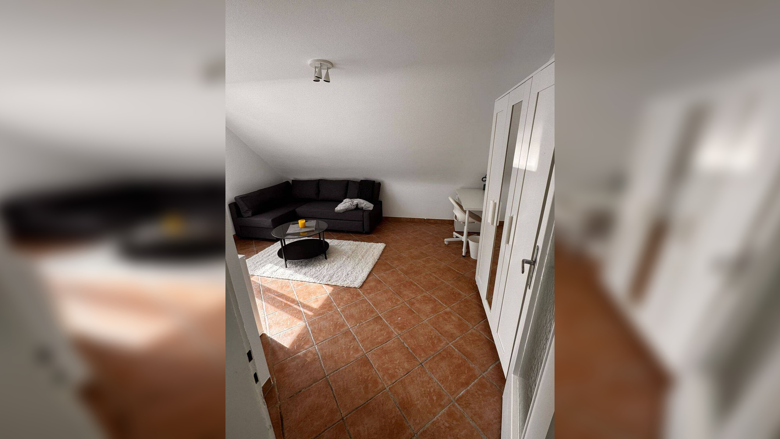 Zeitwohnen mit Stil - möbliertes WG-Zimmer in Karlsruhe-WolfartsweierDieses stilvoll eingerichtete Zimmer verbindet Gemütlichkeit, Funktionalität und modernes Design - perfekt für alle, die für eine Zeit in Karlsruhe wohnen und dabei nicht auf Wohnqualität verzichten möchten.Der Raum ist hell, freundlich und klar strukturiert - ideal, um nach einem langen Arbeitstag oder einem intensiven Uni-Tag zur Ruhe zu kommen. Die komfortable Schlafcouch ersetzt hier das klassische Bett und lässt sich im Handumdrehen in eine angenehme Liegefläche verwandeln. Damit bietet das Zimmer sowohl einen gemütlichen Wohnbereich als auch eine praktische Schlafgelegenheit in einem.Ein eleganter Couchtisch, ein geschmackvoller Teppich und ein modernes Sideboard verleihen dem Raum eine warme, wohnliche Atmosphäre. Durch das große Fenster fällt Tageslicht, das den Raum zusätzlich offen und freundlich wirken lässt. Der Schreibtisch mit Stuhl bietet den idealen Platz zum konzentrierten Arbeiten, Lernen oder einfach für kreative Momente bei einer Tasse Kaffee.Ausstattung (gemeinschaftlich nutzbar)Wie alle Zimmer in der Wohnung profitieren auch die Bewohner dieses Zimmers von einer komfortablen Gemeinschaftsausstattung:- WLAN im gesamten Bereich (optional gegen Entgelt)- Voll ausgestattete Küche mit Herd, Backofen, Kühlschrank, Mikrowelle und Kaffeemaschine- Modernes Tageslichtbad mit Dusche/Wc- Waschmaschine und Trockner (optional gegen Gebühr nutzbar)- Parkplatz direkt am Haus- Fahrradfreundliche Lage und gute Anbindung an öffentliche VerkehrsmittelIdeal für Berufstätige und Pendler, die eine ruhige und gepflegte Unterkunft suchen oder Studierende und Praktikanten, die möbliert und unkompliziert wohnen möchten oder Kurzzeitmieter, die auf Komfort und Stil Wert legen.Hinweis - Bitte beachten Sie:In diesem Zimmer steht eine Schlafcouch, kein separates Bett. Sie ist hochwertig und bequem - ideal für eine Person oder Gäste auf Zeit.FazitDieses Zimmer bietet viel Charakter auf 30 qm Raum - modern möbliert, durchdacht gestaltet und mit angenehmer Atmosphäre. Ob für Wochen, Monate oder ein Semester - hier wohnen Sie auf Zeit mit Stil, Funktion und Wohlfühlfaktor in ruhiger Lage von Karlsruhe-Wolfartsweier.