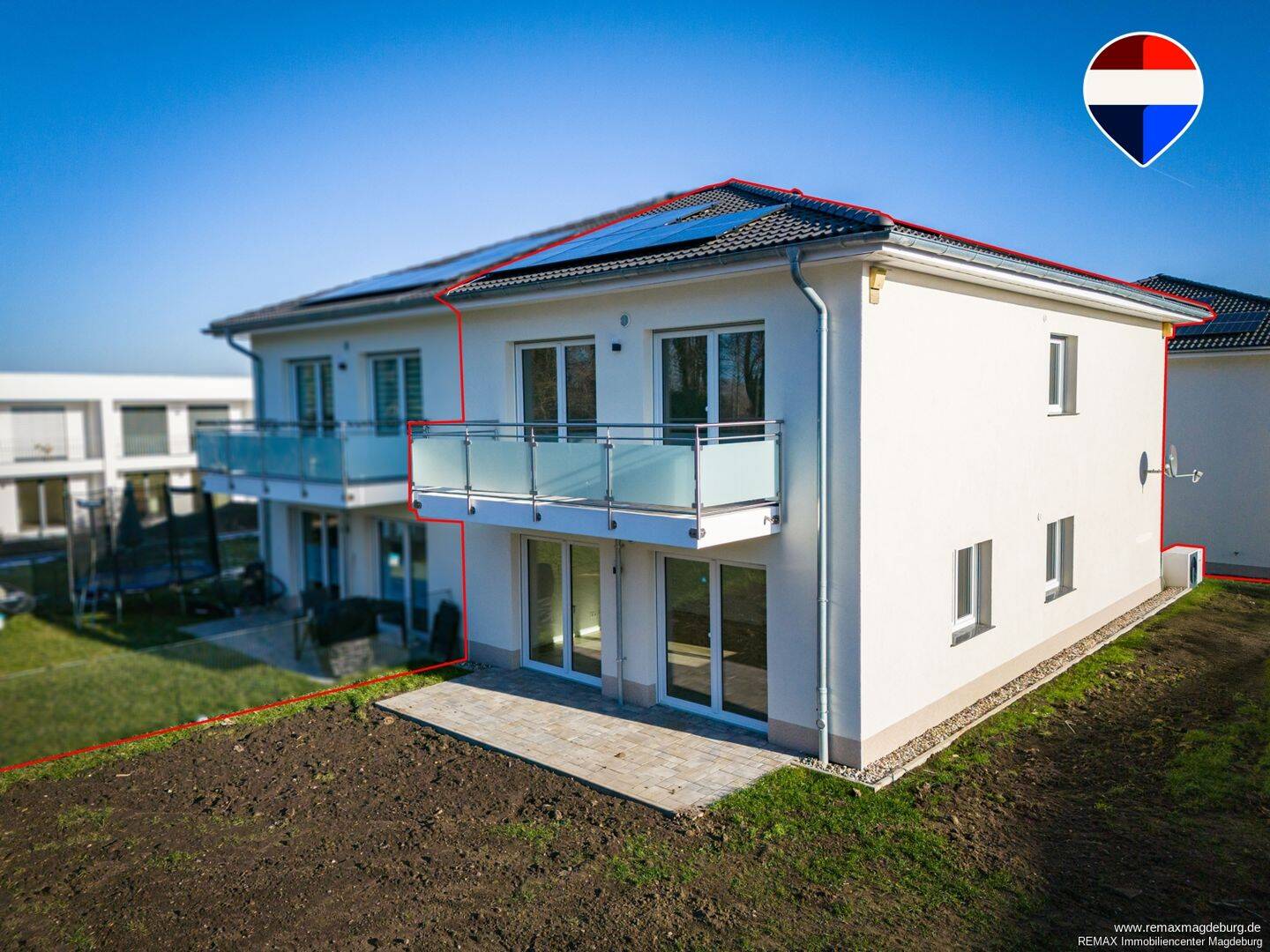 Modern wohnen, flexibel arbeiten - Neubau-Doppelhaushälfte in ruhiger Lage von Magdeburg-OtterslebenDiese hochwertige Neubau-Doppelhaushälfte in Magdeburg-Ottersleben bietet auf ca. 134 m² Wohnfläche ideale Voraussetzungen, um Wohnen und Arbeiten harmonisch miteinander zu verbinden. Die durchdachte Raumaufteilung schafft sowohl private Rückzugsorte als auch optimale Bedingungen für Homeoffice oder selbstständige Tätigkeiten.Bereits beim Betreten des Hauses empfängt Sie ein einladender Windfang mit Platz für eine Garderobe. Der angrenzende Hauswirtschaftsraum bietet zusätzlichen Stauraum sowie praktische Anschlüsse und sorgt für einen strukturierten, funktionalen Alltag - auch im Arbeitsalltag.Der offen gestaltete Wohn-, Ess- und Kochbereich bildet das kommunikative Zentrum des Hauses. Hier lassen sich Wohnen und Arbeiten flexibel kombinieren - ob als inspirierender Arbeitsplatz mit Blick ins Grüne oder als lebendiger Treffpunkt nach Feierabend. Das moderne Duschbad im Erdgeschoss bietet zusätzlichen Komfort, insbesondere für Gäste oder bei beruflicher Nutzung.Im Obergeschoss eröffnet sich ein großzügiger Bereich, der sich ideal als Kombination aus Schlaf- und Arbeitszone oder als separater Homeoffice-Bereich nutzen lässt. Der direkte Zugang zum Balkon schafft einen angenehmen Ausgleich zum Arbeitsalltag und bietet Raum für Pausen an der frischen Luft.Das hochwertig ausgestattete Hauptbad mit Badewanne und separater Dusche sorgt für entspannte Momente nach einem produktiven Tag. Zwei weitere Zimmer bieten vielseitige Nutzungsmöglichkeiten - ob als Büro, Besprechungsraum, Kinderzimmer oder Gästebereich.Dank energieeffizienter Bauweise und moderner Ausstattung mit Fußbodenheizung und Lüftungsanlage genießen Sie ein angenehmes Raumklima - ideale Voraussetzungen für konzentriertes Arbeiten und entspanntes Wohnen.Der private Garten erweitert den Wohn- und Arbeitsraum ins Freie und bietet vielseitige Nutzungsmöglichkeiten - von der Ruhezone bis hin zum kreativen Arbeitsplatz im Grünen. Das ca. 349 m² große Grundstück sowie der Stellplatz direkt am Haus unterstreichen den hohen Komfort dieser Immobilie.Diese Neubau-Doppelhaushälfte vereint modernes Wohnen mit flexiblen Arbeitsmöglichkeiten in ruhiger Lage von Magdeburg. Perfekt geeignet für alle, die ihr Zuhause gleichzeitig als Lebensmittelpunkt und produktiven Arbeitsort nutzen möchten.Der Abschluss der Versorgungsverträge erfolgt eigenständig durch den Mieter.Haben wir Ihr Interesse geweckt? Dann überzeugen Sie sich selbst und vereinbaren Sie noch heute einen Termin mit uns, um Ihnen die Immobilie ausführlich zu präsentieren.Wir bitten um Verständnis, dass wir Ihre Anfrage nur bearbeiten können, wenn Sie uns bei einer Kontaktaufnahme Ihre vollständigen Kontaktdaten angeben. Wir freuen uns auf Ihren Anruf!