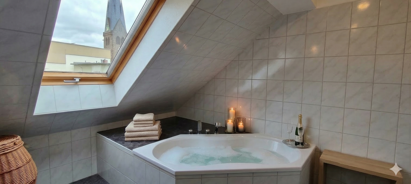 Zum Verkauf steht eine attraktive und gepflegte 4-Raum-Maisonette-Wohnung mit einer Wohnfläche von ca. 104 m² und einer Nutzfläche von ca. 124 m². Die Wohnung befindet sich in einem sanierten Mehrfamilienhaus und wurde im Jahr 2021 ausgebaut und modernisiert.Der Zugang zur Wohnung erfolgt über das 2. Obergeschoss. Ein kompakter, zentral gelegener Flur mit Garderobenbereich dient als funktionaler Verteiler. Von hier aus gelangen Sie in das helle Wohnzimmer mit angrenzendem Esszimmer, in die Küche, in das Gäste-WC sowie über die Treppe in das Dachgeschoss.Das Wohnzimmer mit ca. 22m² Wohnfläche und das Esszimmer mit ca. 10 m² Wohnfläche profitieren von einer Südausrichtung, die eine hervorragende natürliche Belichtung garantiert und für eine angenehme Wohnatmosphäre sorgt. Die statischen Gegebenheiten erlauben es, die Trennwand bei Bedarf (teilweise) zu entfernen, um den Wohnraum noch großzügiger zu gestalten.Die ca. 14 m² große Küche ist mit einer zeitlosen Einbauküche (Schwarz-Weiß-Design) sowie Elektrogeräten der Marken Siemens und Bosch ausgestattet. Von hier aus ist der Balkon (ca. 3 m²) mit Blick ins Grüne zugänglich.Ein separates Gäste-WC mit integriertem Waschmaschinenanschluss vervollständigt das Raumangebot auf dieser Etage.Eine Treppe mit Massivholzstufen auf einer Stahlträgerkonstruktion führt auf die offene Galerieebene, die sich ideal als Arbeitsbereich oder Bibliothek nutzen lässt.Das sehr schön belichtete Schlafzimmer bietet direkten Zugang zu einer separaten Ankleide. Direkt angrenzend befindet sich das große Tageslichtbad, das kaum einen Wunsch offen lässt: Eine komfortable Doppeleckwanne, eine separate Dusche, zwei Einzelwaschtische sowie ein WC sorgen für ein hohes Maß an Komfort.Ein weiteres großes Zimmer eignet sich bereits im IST-Zustand als Kinderzimmer. Bei Bedarf könnte dieser Raum und ein Teil der Galerie mit wenig Aufwand so umgebaut werden, dass sogar zwei Kinderzimmer entstehen können. Im Keller bieten Ihnen zwei trockene Kellerräume mit einer Gesamtnutzfläche von ca. 21 m² überdurchschnittlich viel Stauraum. Ein per Schranke gesicherter Stellplatz ist direkt neben dem Haus anmietbar.Insgesamt eignet sich die Wohnung ideal für einen Zwei- bis Vierpersonenhaushalt.KI-Hinweis: Wir haben ausgewählte Bilder mit KI bearbeitet, um Ihnen einen besseren Eindruck zu vermitteln, was aus dieser - auch bereits jetzt - sehr gepflegten Wohnung entstehen kann. Dabei haben sich die Änderungen beschränkt auf Wandfarbe, Wegnahme von vorhandenen Fliesen, Möbel, Badmöbel und Sanitärobjekte. In keinem Fall wurde an den grundlegenden baulichen Gegebenheiten etwas verändert. Die im Kaufpreis enthaltene Einbauküche blieb unverändert. Erzählen Sie uns vor Ort von Ihren Ideen :)