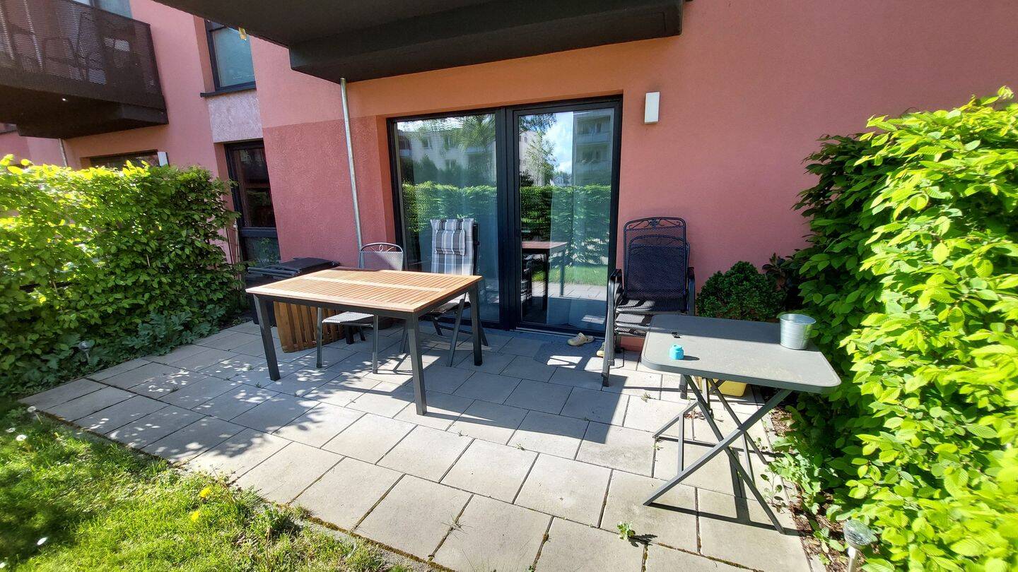 Diese attraktive 3-Zimmer-Terrassenwohnung mit ca. 86 m² Wohnfläche (inklusive Terasse) befindet sich im Erdgeschoss eines gepflegten Mehrfamilienhauses in Duisburg-Wanheim-Angerhausen. Sie soll zum 01.07.2026 bezogen werden. Die Einbauküche wurde beim Erstbezug im Oktober 2023 speziell für diese Wohnung angefertigt und muss gegen eine Abschlagszahlung von 4.000€ (VB) vom Vormieter übernommen werden. Der Stellplatz in der Tiefgarage kann optional dazu gemietet werden. Sowohl bei der Wohnung als auch bei dem Stellplatz handelt es sich um einen Indexmietvertrag. Ausstattung: - Erstbezug im Oktober 2023 - Großzügige Wohn-Essbereich - Solide Massivbauweise mit moderner Architektur - Energieeffiziente Fernwärme - Fußbodenheizung - Hochwertiger Vinylfußboden - Großformatige Fliesen - Kunststofffenster - Raufasertapete - Personenaufzug - Abstellraum - Fenster mit Wärmeschutz-Isolierverglasung - Badausstattung namhafter Hersteller (Duravit, Hansgrohe und Kaldewei) - Terrasse zur Südseite mit Außensteckdose und direktem Zugang zum KinderspielplatzÄhnliche Angebote