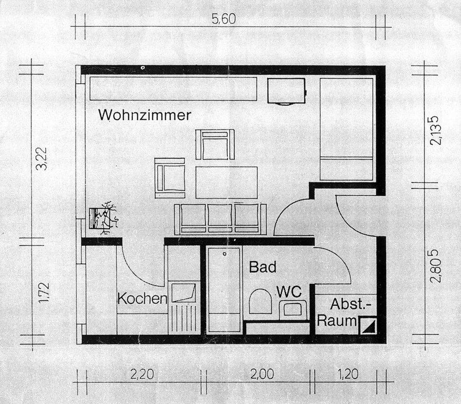 Sehr ruhiges, schön geschnittenes 1-Zimmer Appartement mitten im Grünen, welches eine wunderschöne Aussicht auf eine großzügig angelegte und gepflegte Grünfläche bietet.
